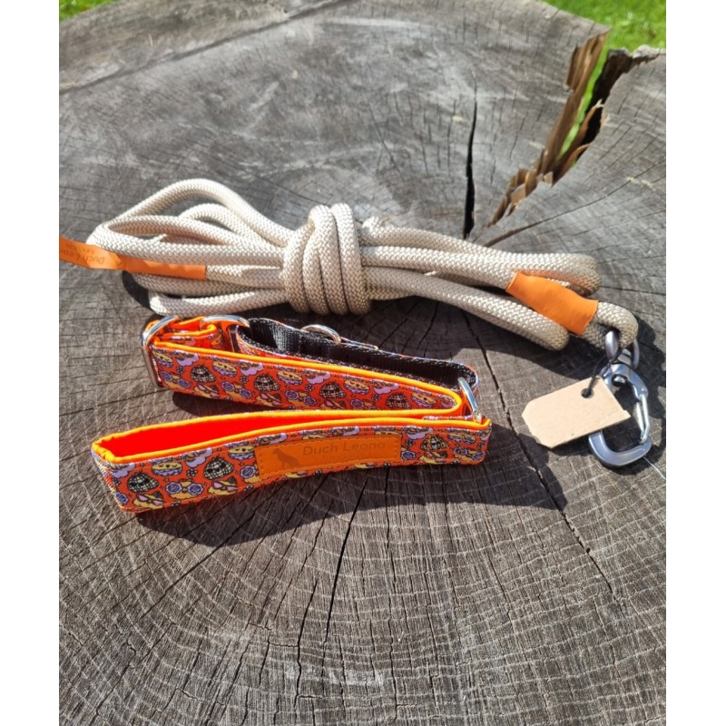 Linka - smycz z polipropylenowego sznurka plecionego z 18 włókien bez rdzenia 8mm wytrzymała na obciążenia do 340kg. Leciutki, niewielki aluminiowy karabińczyk 71mm o wytrzymałości do 400kg.